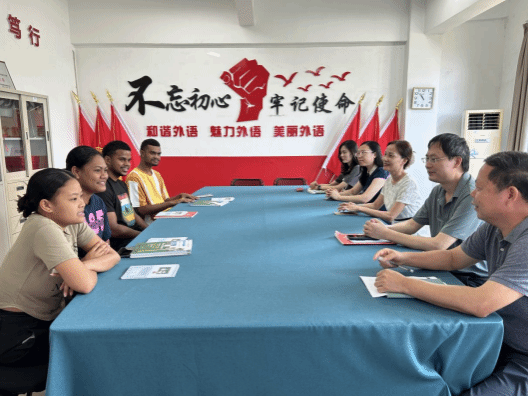 2023年9月18日,beat365vip官网登录入口在学院会议室召开留学生师生见面交流会。beat365官网池玫院长,林盛书记,范云霞副院长,饶卫忠副院长与留学生任课老师丁彧藻,周文蕴参加了交流会。