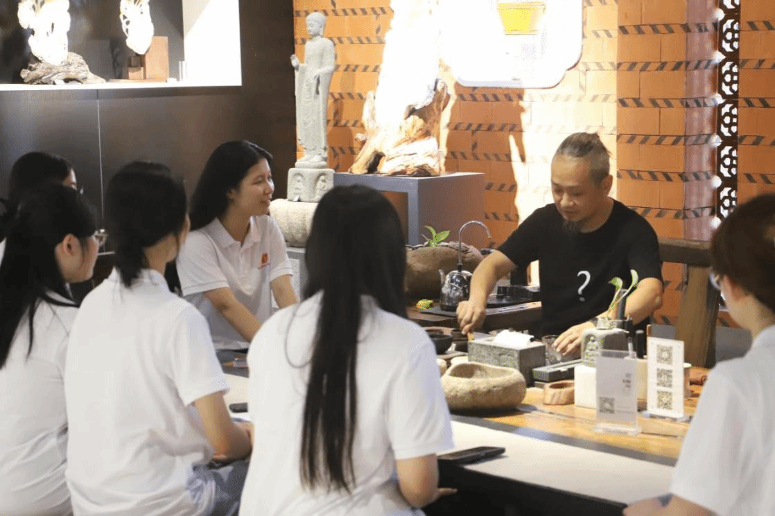 在惠安雕艺文创园,琳琅满目的石雕作品展示了精湛技艺和丰富文化内涵,更溯源石雕历史,讲述石雕艺术背后的文化故事,帮助队员们进一步理解石雕文化的深厚底蕴。