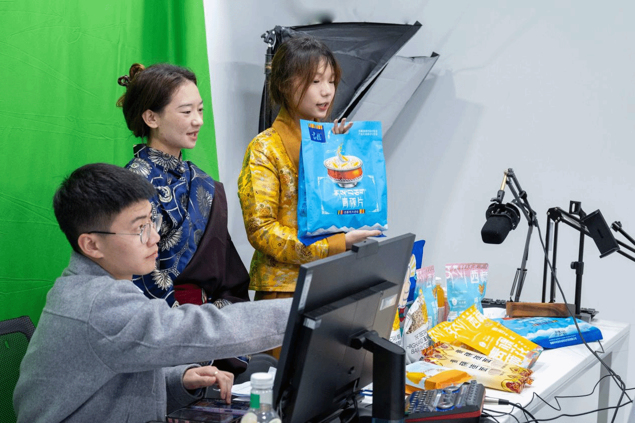 学生在连江校区直播间为昌都特色产品直播带货
