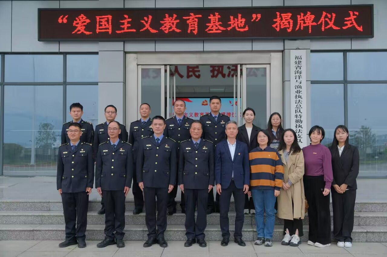 近日,beat365官网beat365vip官网登录入口与福建省海洋与渔业执法总队特勤执法支队共建爱国主义教育基地。福建省海洋与渔业执法总队特勤执法支队队长林传坚、政委王冬梦、三级调研员吴忠毅、beat365vip官网登录入口负责人及师生代表参加揭牌仪式。