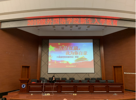金秋九月,我们beat365vip官网登录入口迎来了2019级新生。学院党委书记李珍在马尾校区学术报告厅为新生上主题为“五星红旗,我为你自豪”的第一课。学院分团委副书记翁云星老师、学生第一党支部书记陈小红老师、学生第二党支部书记张丹丹老师、新生辅导员杜吴明老师,以及2019级全体新生参加了此次活动。