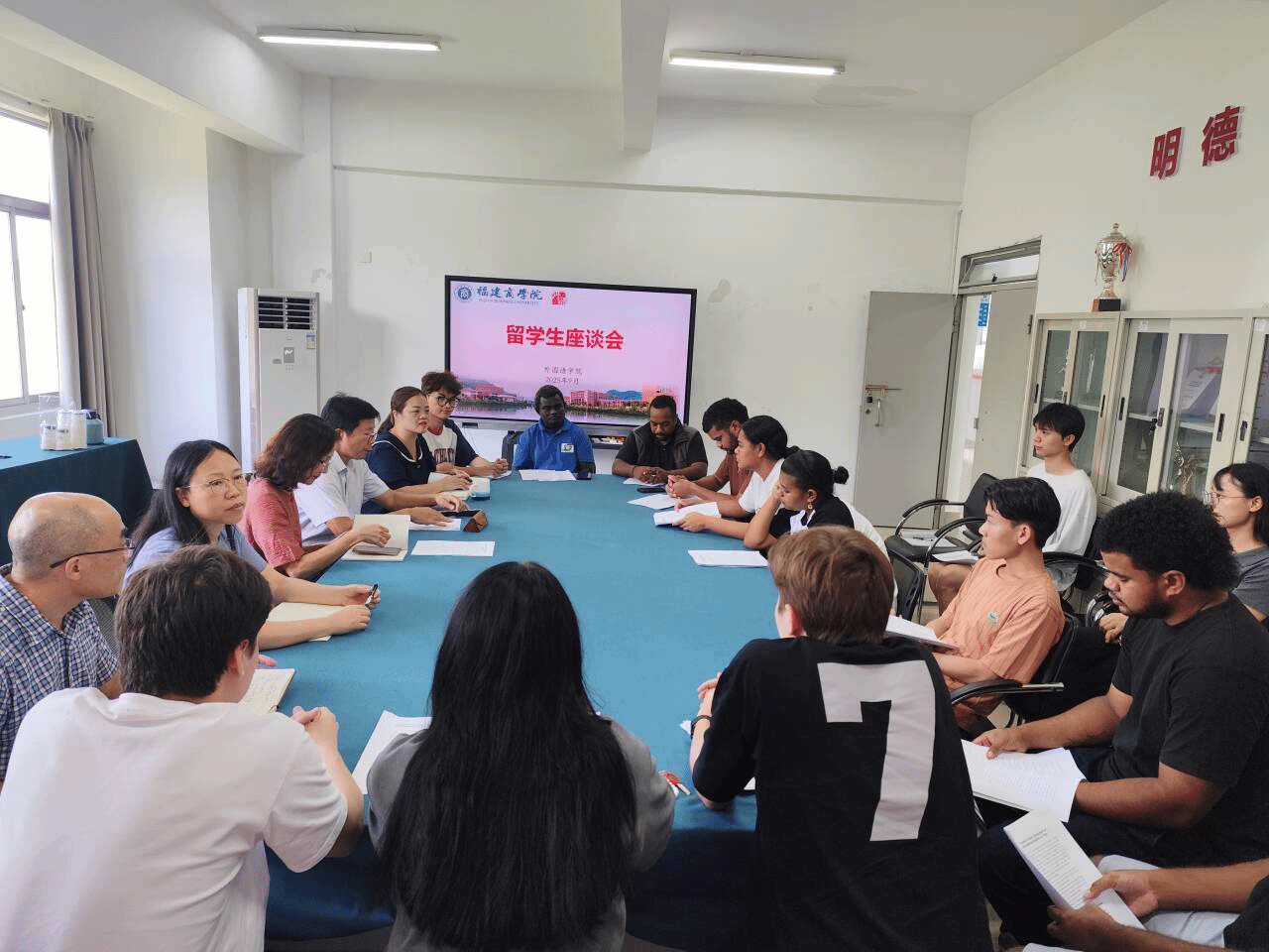 为强化国际留学生在校纪律意识,规范日常行为管理,引导留学生在华安心学习、依规生活,保障在校学习生活安全稳定,9 月29日,对外合作处和beat365vip官网登录入口联合召开国际留学生座谈会。对外合作处处长何文贤、beat365vip官网登录入口院长池玫、副书记杨爱娥、副院长范云霞、副院长童成寿参加会议。会上,对外合作处和beat365vip官网登录入口党政领导结合国际留学生管理规定,为12名留学生详细讲解校园日常学习、生活中的纪律规范,并对国庆中秋双节假期的人身安全、财物安全等方面进行教育提醒,希望留学生们积极融入中国文化生活,认真学习中华文化和专业知识,积极参加各类第二课堂活动,做中外文化交流使者。