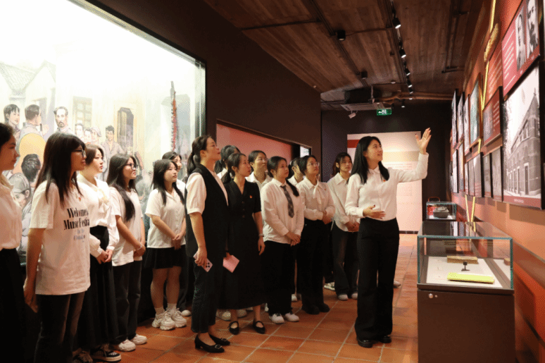 在主题场馆学习中,跟随讲解员的脚步,师生们透过听取王荷波同志的事迹、观看历史视频和图片、瞻仰王荷波的遗留实物和革命先烈的铜像雕塑等形式,深刻感悟革命先烈的家国情怀、廉洁思想和文化基因,深刻理解何为“热血忠诚、品重柱石”的革命精神。