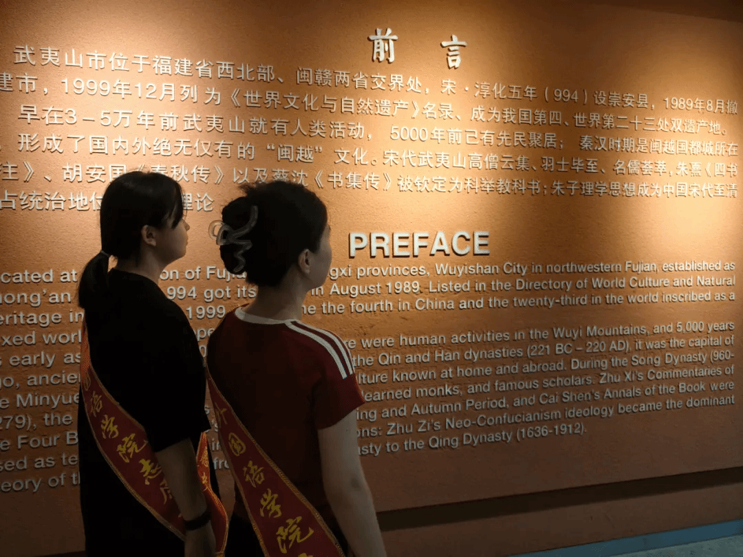 在武夷山博物馆,实践队根据馆内的“朱子文化展厅”系统梳理了朱熹在武夷山的生活轨迹与学术成就,在感悟朱子文化丰富内涵的同时,也体会到了朱子文化对中国传统社会的深远影响。