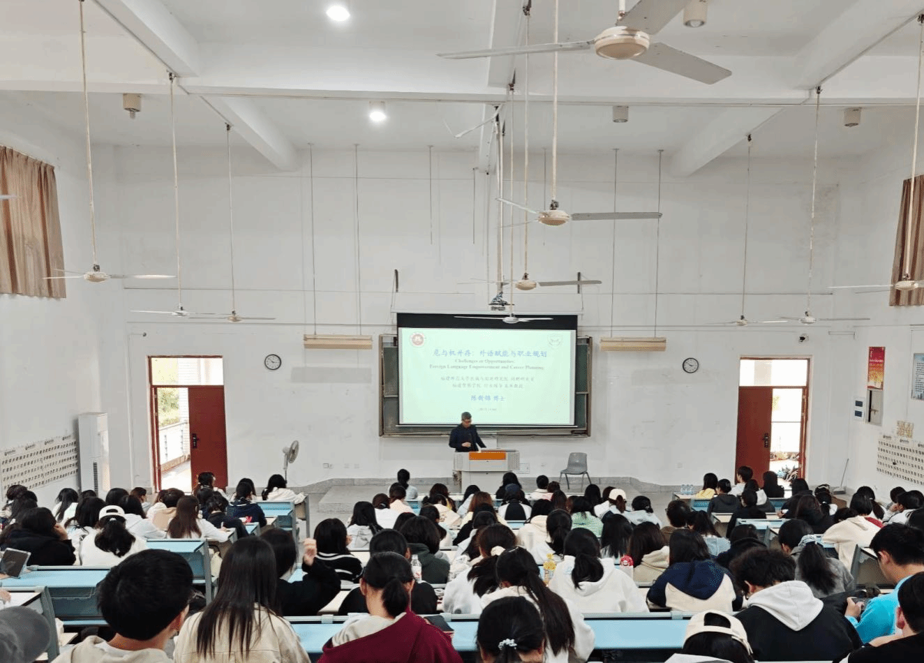 图 1陈新锦博士开展“外语赋能与职业规划”专题讲座