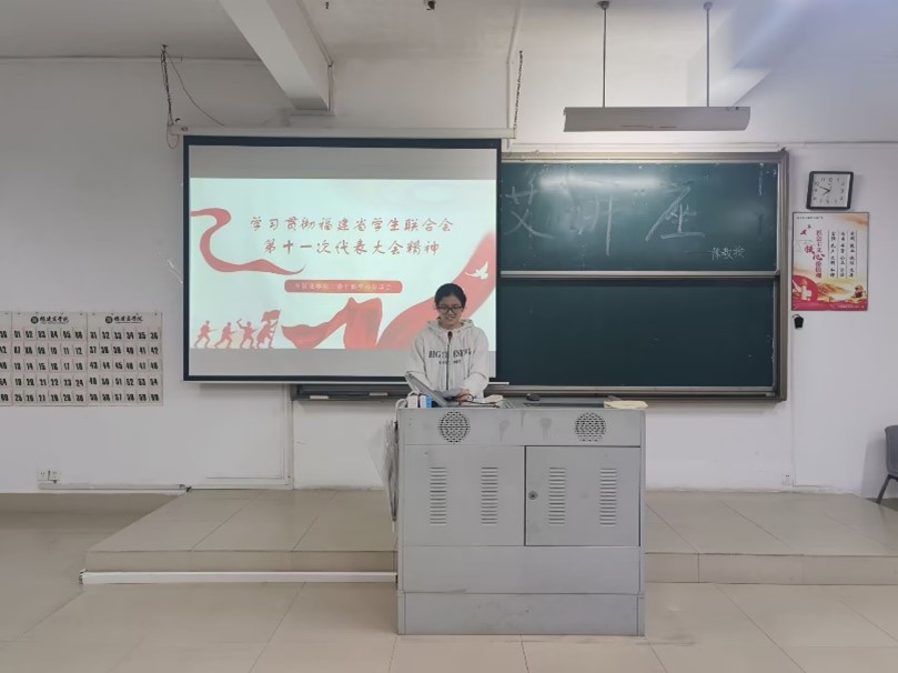 会上,学生干部结合自身学习感悟,就大会精神发表心得体会。黄思坪同学认为作为福建青少年,更应该磨练坚强意志,锤炼过硬本领,以昂扬的状态全面发展,以奋进的姿态许党报国,积极投身于新时代新福建建设,争做爱思考,善创造的新青年,为福建省的现代化建设贡献青春的力量。陈锦义同学以大会内容为切入点,深切地感受到党中央对青年学生的信任和期望。他呼吁学生干部要努力发挥带头作用,团结广大同学,在奋力谱写中国式现代化福建篇章中奏响青春建功最强音。听取学习心得分享后,在座的同学们纷纷点头表示赞同,他们认为新时代新青年要以习近平新时代中国特色社会主义思想为指引,坚定理想信念,持之以恒充实知识储备,孜孜不倦获取实践真知。