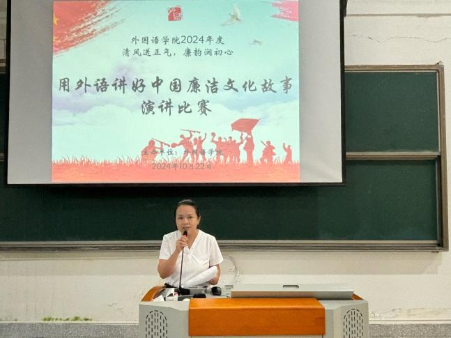 为推动廉洁教育在教育教学全过程中的融入,培养具有深厚语言功底与高尚情操的外语人才,10月22日,beat365vip官网登录入口于马尾校区国际厅开展“清风送正气,廉韵润初心”——“用外语讲好中国廉洁文化故事”演讲比赛。本次比赛共分为英语组、日语组两个组别,李林株老师、谢玉容老师、郭桓老师、梅诗琪老师、翁云星老师受邀担任本次比赛评委。
