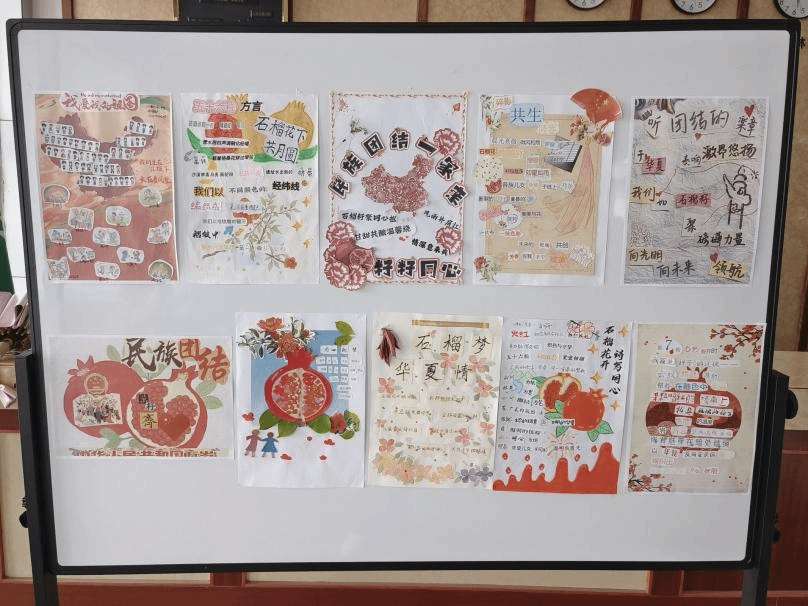 本次拼贴诗作品征集大赛共收到28份作品,并采用线上征集线下展览相结合的方式,鼓励同学们充分发挥创新意识,利用文字、图片、布料、纸张、树叶等素材,构思并创作出体现各民族团结进步、和谐共生的拼贴诗作品。走进展览现场,一幅幅精心创作的拼贴诗作品映入眼帘,它们以鲜艳的色彩搭配,巧妙地将各民族特色图案拼贴组合,用简洁而富有诗意的文字内容传递着同学们对民族团结的美好愿景。每一幅拼贴画都凝聚着同学们的丰富想象力和创造力,承载着他们对各民族共同团结奋斗、共同繁荣发展的强大信心。