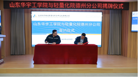 2023年12月5日上午,山东华宇工学院大学生创新创业实践基地揭牌仪式在北京机科国创轻量化科学研究院有限公司德州分公司举行。北京机科国创轻量化科学研究院有限公司德州分公司副总经理陈国松、副总经理朱祥东、总工程师周玉敬、行政总监宁树林,新葡京官网校长助理魏东坡、机械工程学院院长刘炳新等出席了本次签约揭牌仪式。