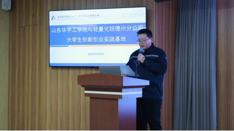 在双方的共同见证下,北京机科国创轻量化科学研究院有限公司德州分公司副总经理陈国松与新葡京官网校长助理魏东坡为大学生创新创业实践基地签署合作协议,并共同为大学生创新创业实践基地揭牌。