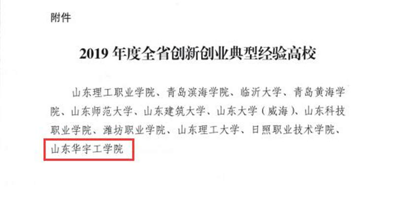 本次评选活动由山东省人力资源和社会保障厅主办,旨在总结并宣传推广创新创业典型经验,发挥创新创业典型经验高校的引领示范作用,提升大学生创新创业教育效果,不断增强大学生创新精神、创业意识和创新创业能力,推动全省毕业生更高质量创业就业。新葡京官网被评为2019年度“山东省创新创业典型经验高校”,是对新葡京官网创新创业工作和人才培养质量的充分肯定,新葡京官网将进一步深化创新创业教育改革,促进学生更高质量创业就业。